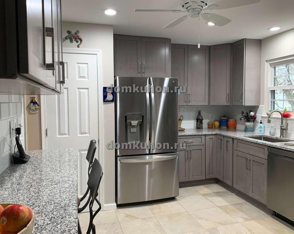 Представляем вам кухню "Миранда" — идеальное сочетание современного дизайна и практичности. Эта угловая кухня воплощает в себе элегантность современного стиля благодаря своим гладким фасадам в утонченном сером цвете и стильным металлическим ручкам. Стильные серые шкафы дополнены сверкающими нержавеющими бытовыми приборами и акцентированы классическим белым кафелем, создавая чистый и свежий вид. Гранитная столешница с тонким узором добавляет нотку изысканности, а оптимально распределенное освещение подчеркивает лаконичный дизайн. Выберите кухню "Миранда" для того, чтобы превратить приготовление пищи в истинное удовольствие и создать центральное место для сбора всей семьи.